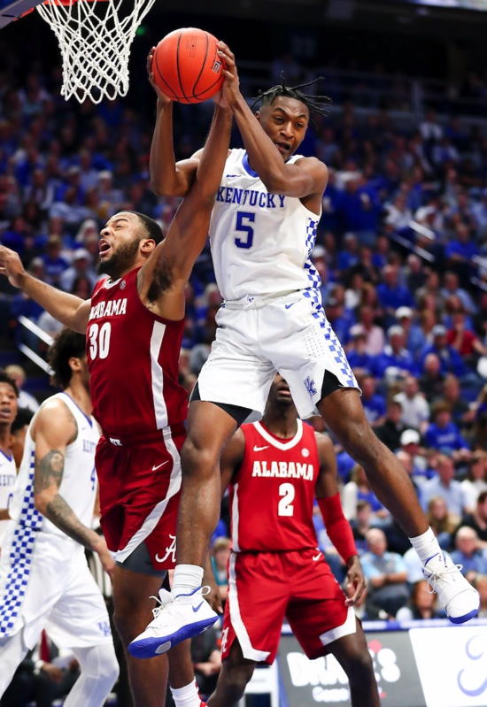 Immanuel Quickley (#5) secures a rebound over Alabama's Galin Smith (#30)