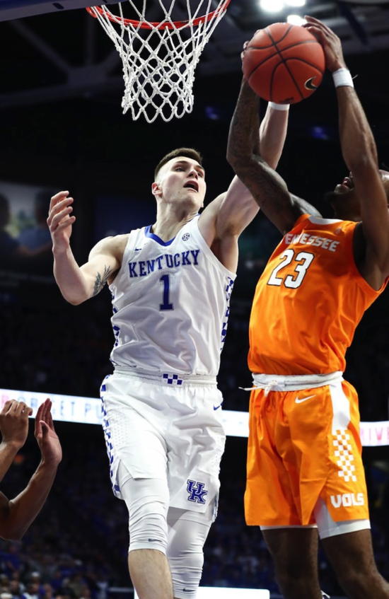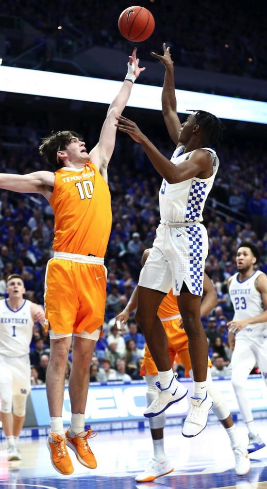 Immanuel Quickley shoots a floater over Tennessee's John Fulkerson (#10)
