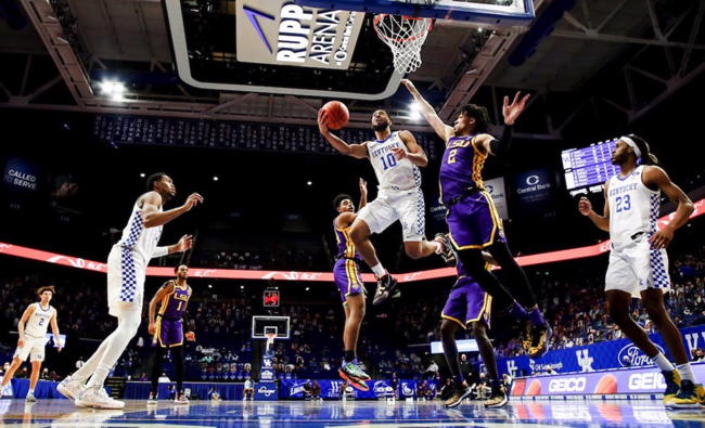 Keion Brooks (#12) defends against LSU's Cameron Thomas (#24)