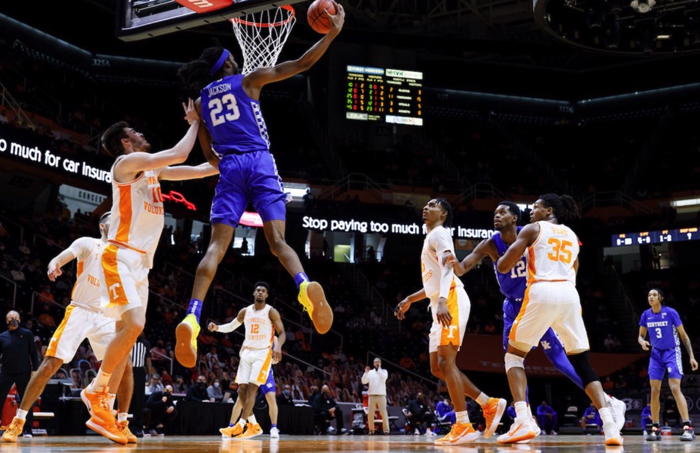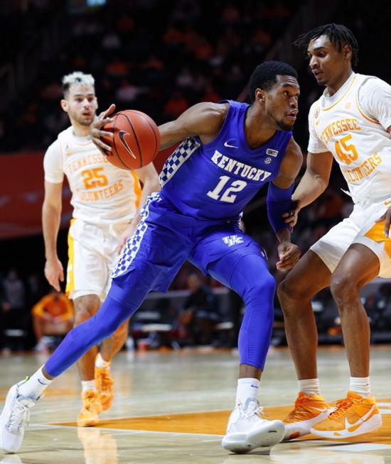 Keion Brooks (#12) drives past Tennessee's Keon Johnson (#45)