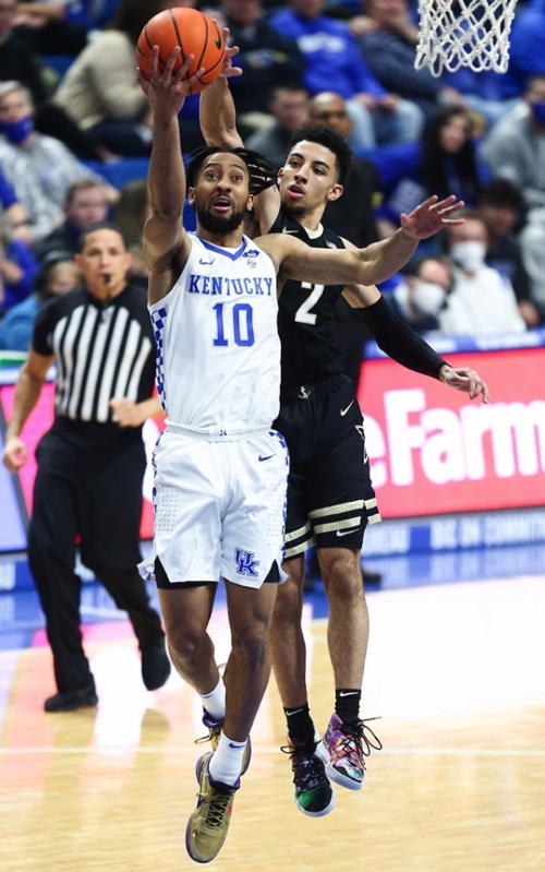 Davion Mintz (#10) scores ahead of Scottie Pippen Jr. (#2)