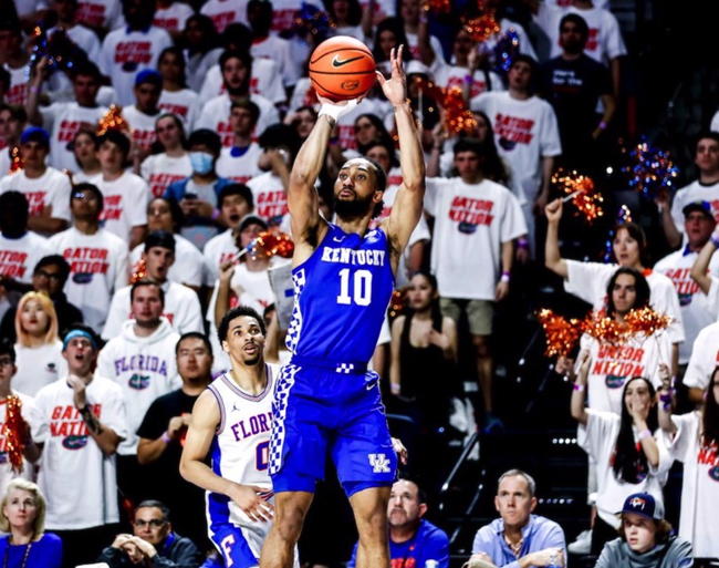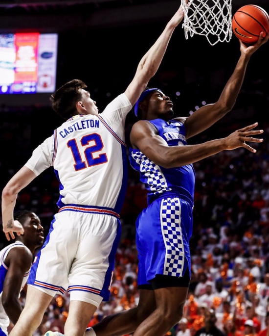 Oscar Tshiebwe scores inside while defended by UF's Colin Castleton