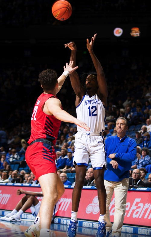 Antonio Reeves (#12) shoots over Andy Barba (#22)