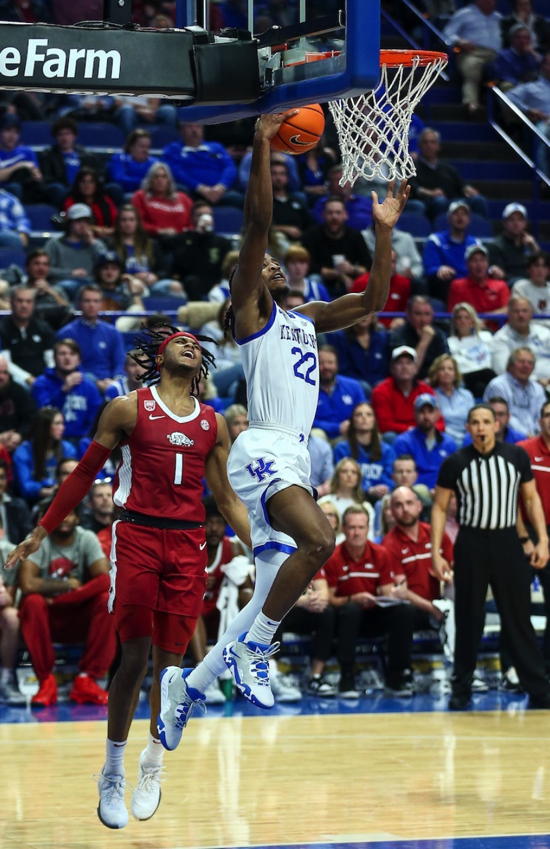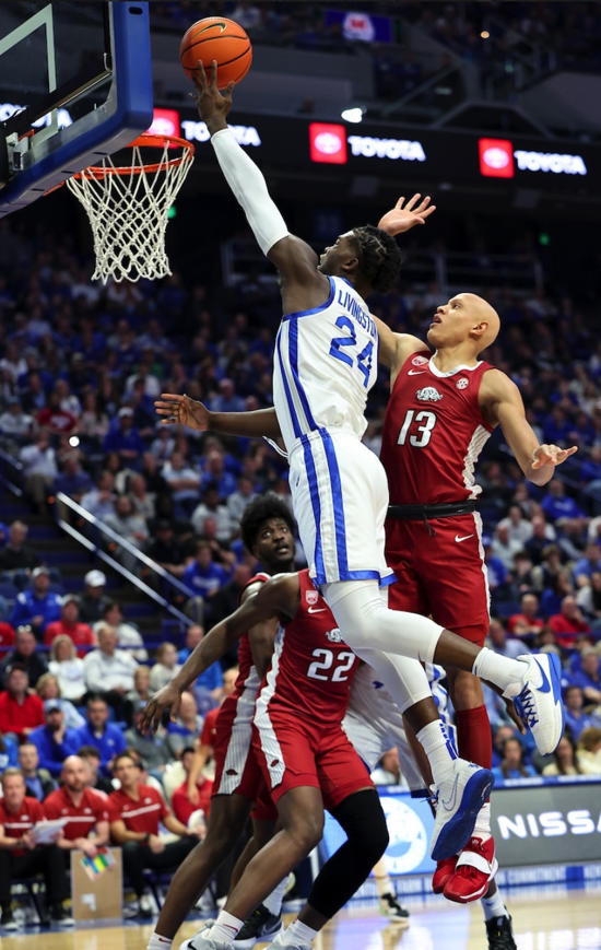 Chris Livingston (#24) drives on Arkansas' Jordan Walsh(#13)