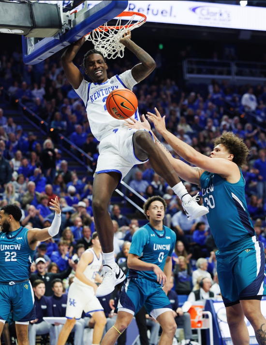 Aaron Bradshaw scores his first basket as a Kentucky Wildcat