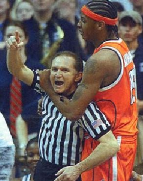 | 3/25/1995 | Kentucky vs. North Carolina | L | 61 - 74 | 23 | 12 | 16 | 28 | 0 | 0 | Rasheed Wallace for elbowing Andre Riddick's head, Walter McCarty for looking indistinguishable from Andre Riddick [at least according to Tim Higgins, Tom Rucker (and Hank Nichols, head of officiating sitting in the stands, who later tried to cover up for the terrible call)] | Tim Higgins, Bob Donato and Tom Rucker |
