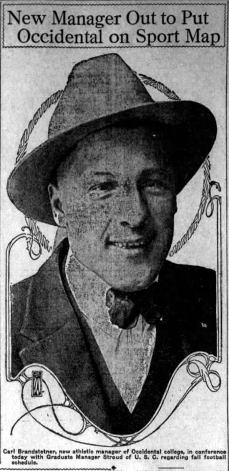 Corporal Brandstetner was widely known as a star football player. He was manager of the Occidental eleven in 1913, and under his leadership the team became one of the strongest in California.