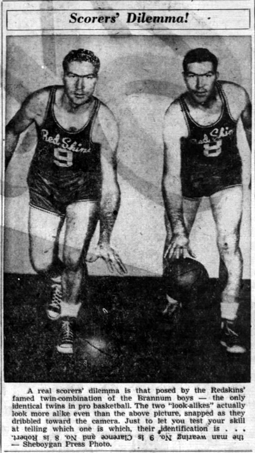 WHEN SOUTHEASTERN CONFERENCE COACHES read in the papers along about mid-year that Bob Brannum has been drafted for military service, and then discover next season that they're playing his twin, they probably will accuse Adolph Rupp of doing something with mirrors, but it will be strictly legitimate. The boys will be 18 years old in May and Bob probably will be taken into the Army, but there's a chance that Clarence will be passed over because of having had typhus. In that event he'll return to the University and the name Brannum still will figure in Wildcat scoring.