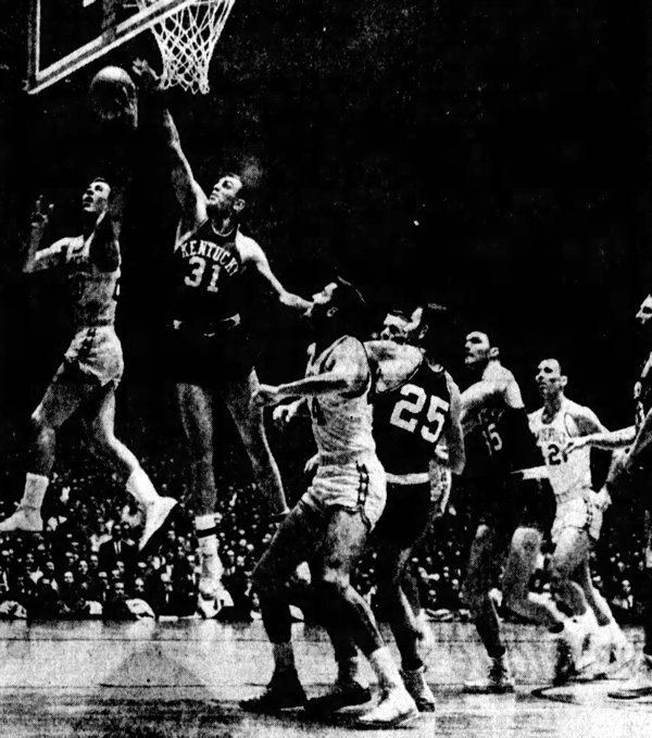 The UK starters were Johnny Cox, Ed Beck, Vernon Hatton, Adrian Smith and the 6-foot-3, 180-pound Crigler, a native of Hebron in Boone County. Mr. Crigler had 14 points and 14 rebounds in the game.