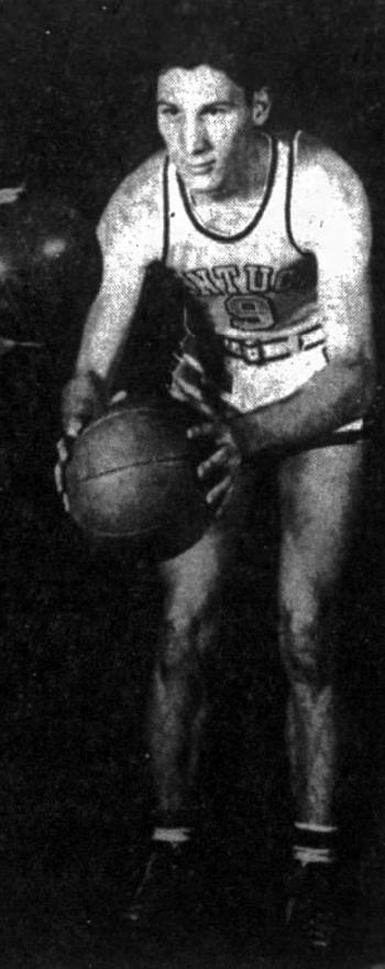 ENGLAND, Capt. Kenneth Haynes, 24, B.S. in Agri. '42, son of Mr. and Mrs. Gilbert H. England of Campbellsburg. While at the University of Kentucky, he was an outstanding basketball player. During the war he commanded [Company M of the 85th Regiment of] the 10th Mountain Division, the only ski troop in America. In December of 1944 he left for duty in Italy. He led the division in taking Mt. Belvedere from the Nazis, for which he won the Bronze Star. In the final campaign in Italy he died of wounds received while crossing a mine field on April 14, 1945. Besides the Bronze Star he had been awarded the Silver Star. An athletic field in Italy was named England Field.