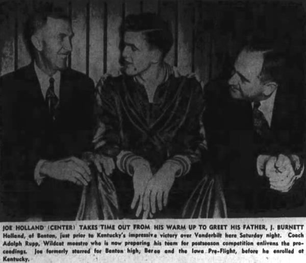 "Joe and his wife, Betty, were just wonderful people," said Joe B. Hall, who was a freshman at UK when Mr. Holland was a senior. Hall would later coach Holland's son Joey.