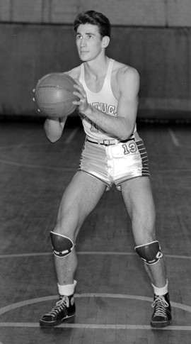 He went to the University of Kentucky on scholarship and played with Adolph Rupp's Wildcats. While a student there, he was crowned Intramural Boxing Champ. After graduation, he played with Kautsky's All American pro basketball team out of Indianapolis. He was a Marine veteran of World War II.