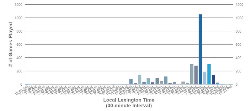 Note: The game times are placed into buckets of 30 minute duration. These are the listed game times, not necessarily when the game actually started, which may have been delayed due to television priorities.