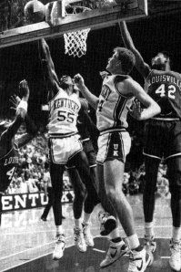 Kenny Walker - Shot at the buzzer defeats the Charles Barkley-led Auburn squad and clinches the SEC Tournament title for the first time since the tournament was reinstated. "With three seconds left, Jim Master bounced a pass to Walker just to the right of the key, and he shot with two seconds left. The ball hit the front of the rim, bounced up and through the net as the buzzer sounded. 'One of the greatest things about this victory,' said Kentucky coach Joe B. Hall, 'is that maybe now folks will stop saying the tournament isn't important to us.'" - Atlanta Journal and Constitution, March 11, 1984.