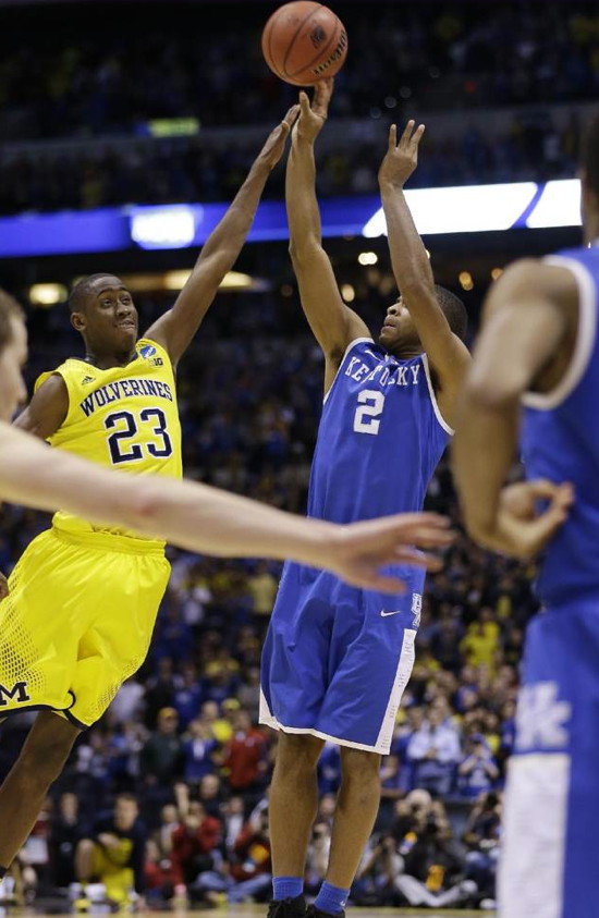 Aaron Harrison - With the score tied 72-72, Harrison hit a tightly contested three-point shot over Michigan's Caris LeVert with less than five seconds remaining in the game for the game winner to put UK in the Final Four.