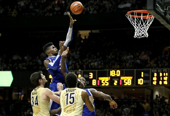 Nerlens Noel - Noel gets off a shot just as the shot clock expired to preserve the lead for UK, in a game which UK won 60-58 on Vanderbilt's home floor.