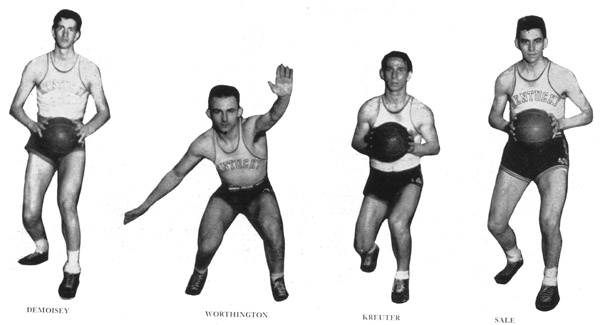 Undoubtedly one of the greatest aggregations of basketball players ever to wear the blue and white suits of the University of Kentucky raged, romped, and doggedly fought its way through 17 games, two of them being tournament frays; emerged victorious in all but two, and lost these by one point margins during the last 30 seconds. A team that averaged 43 points per game or better than a point a minute, that hung up 745 points to 456 for its opponents, that tripped up some of the best teams in the Southern Conference by overwhelming scores, finally found itself defeated; not by any basketball team, but by the insidious perniciousness of ill health. Fortune, trusting, passed the cut, and fate dealt from a stacked deck. While prepping for the last game of the season with Vanderbilt, with just a week to get ready for it. Sale and DeMoisey took the "flu" on successive days, and the third day Worthington, veteran first-string guard, came out for practice with a heavy cold. Sale and DeMoisey weren't able even to practice, and the Wildcat offense was disintegrated. It was with the team in this deplorable condition that they were forced to face the Commodore machine, and the Southern Conference tournament.