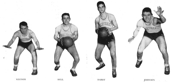 Carey Spicer, one of Rupp's 1931 team, an All-Southern forward, brought his Bengals into town and turned them loose in the gym. When the dust and smoke had cleared away, and the final gun had sounded, the fans knew that they had seen a team in action that could really play basketball: Wildcats who played as if they had been playing together all their lives. They had an offense that was a treat for Kentucky supporters, and a defense that was uncannily perfect. Every man on the squad received a chance to show his wares, and the fans recognized a classy ball club.