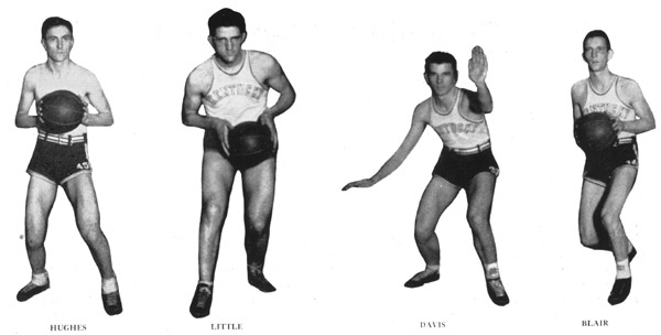 Although the score was not close in any of the games every member of the team handled himself and the ball so dexterously that the games were always interesting to watch. Bill Davis, Jack Tucker, and Dave Lawrence ran practically a dead heat for the high scoring honors, and Amos Taylor was not tar behind. Wilbur Odor, the remaining member of the first team, did not score much, but he was as good a guard as you will find. Odor hawked the ball so closely that Kentucky's opponents scored only one goal during the entire season on a rebound.