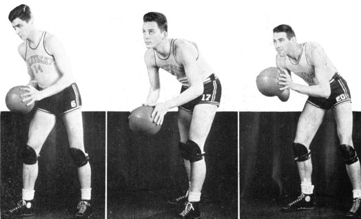 Kentucky had no excuse tonight. The officiating, handled by Frank Lane and John Murray was not questioned, with the exception of a foul called by Murray on Red Hagan of Kentucky. The ball changed hands many times during the first part of the game as each team worked into plays that didn't click. Kentucky was forced to shoot from outside the foul line and the ball usually missed the backboard by several feet.