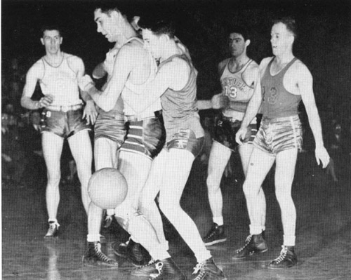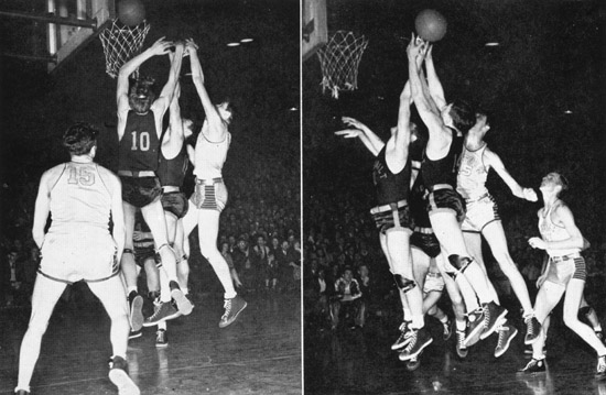 Although three starters fouled out, the Wildcats wouldn't give up and determined to "win this one" if humanly possible. For almost 40 minutes, the 'Cats and the Irish waged a see-saw duel that will probably go down as the greatest game ever played in Louisville's Armory. The 'Cat win broke the Irish seven game winning streak. Unable to penetrate the Irishs' inner defense, the Baronites converted heaves from far out on the court. No one can be singled out for individual honors, although Akers and Ticco racked up 17 and 16 points respectively. Meanwhile Rensberger and Faught ran up 17 and 16 markers for the Irish.