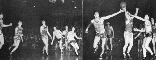 Before a capacity crowd that jammed into every available space of Alumni gym, the Wildcats faltered in the stretch and were defeated, 45-40, by a gallant band of Buckeyes from Ohio State. The Bucks were paced by a couple of forwards, Fred Miller and little Max Gecowets, who scored 14 and 11 points respectively, but it was Dick Shrider, Buckeye guard, that dealt the 'Cats the knockout blow when the chips were on the line.
