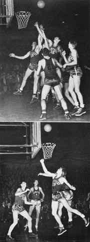 Game of the year followed immediately on the heels of the Spartan encounter. A week and a half session of concentrated drilling showed plainly in the six-point defeat the revived Wildcats gave their Southern rivals. The Vol-Cat game packed Alumni gym with 3,500 eager spectators who saw the Vols take an early lead - only to be cut down by accuracy and speed and spirit that made the Kentuckians invincible in the last minutes.