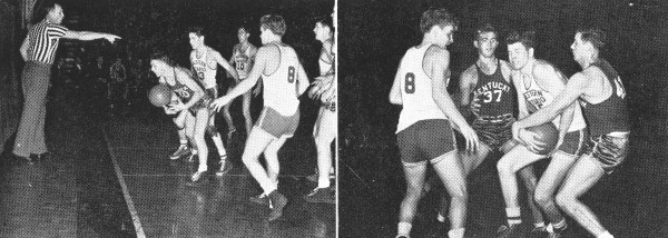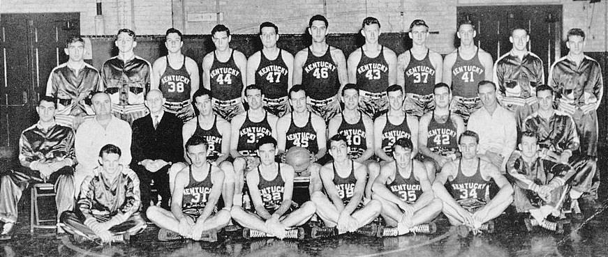 In the semi-finals they met the West Virginia Mountaineers in a game that was nip and tuck all the way. The score was tied 14 times before Kentucky got hot with about two and an half minutes left in the game and scored eight successive points to take a 59-51 decision.