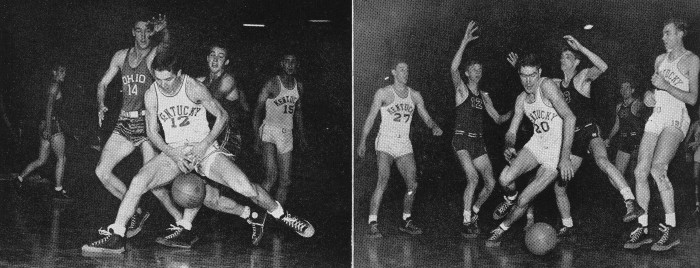 DUTCH CAMPBELL: a six-foot, four-inch center from Newark, Ohio. "Big Dutch" made All-Southeastern in his freshman year, after tossing in 146 markers at the pivot position. He has scored 248 points in three years on the Lynx team. Campbell came to UK after starring for two years with the great Newark, Ohio, high school quintet. He served as a reserve center this season.