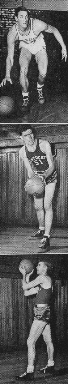 KENNY ROLLINS: a six-foot guard from Wickliffe, Ky. Last year Rollins was elected as captain of the Wildcats. He was also awarded the Most Valuable Player trophy of UK's team. The popular Kentuckian served for three years in the Navy during the war. He didn't get into the limelight as often as some of the other stars, but a Cincinnati sports writer called Ken "the 'classiest of the classy Kentucky Wildcats." Rollins flipped in 310 points to finish third in scoring on the Cat squad. He made All-Southeastern Conference and All-Southern this season.