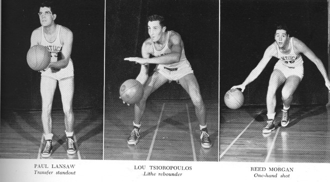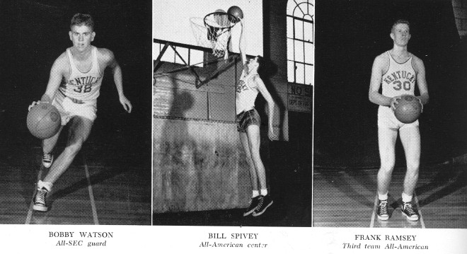 Bill Spivey, the towering center, was chosen the outstanding collegiate basketball player in the country by several All-American polls. Frank Ramsey, sophomore guard, won enough votes to make the third team All-American picks and his running mate, Bobby Watson, as well as forwards Shelby Linville and Captain Walt Hirsch won honorable mention.