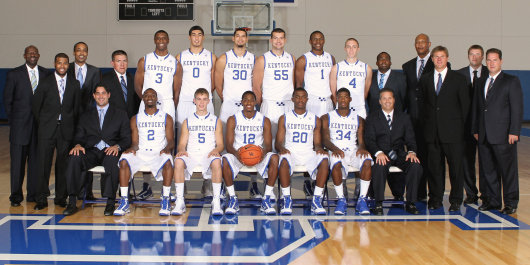 Front Row (l to r): Asst. Coach Orlando Antigua; Stacey Poole; Jarrod Polson; Brandon Knight; Doron Lamb; DeAndre Liggins and Head Coach John Calipari. |