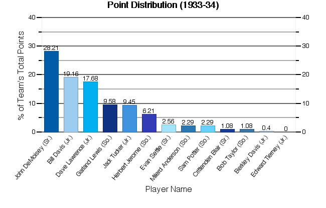 | Herbert Jerome | 13 | 19 | 8 | 46 | 3.54 |