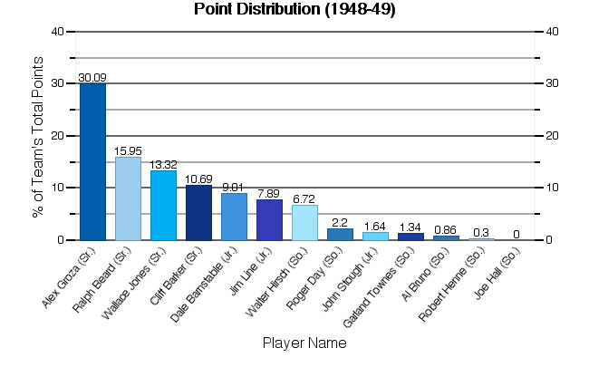 | Ralph Beard | 34 | 144 | 481 | 29.94 | 82 | 115 | 71.3 | 55 | 370 | 10.88 |