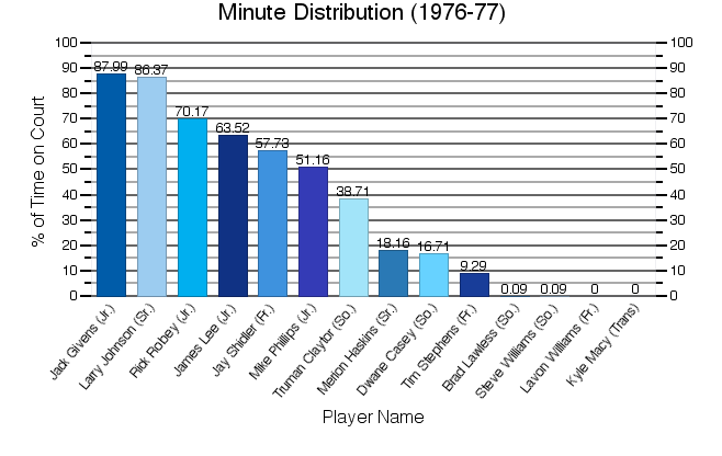 | Jack Givens | 30 | 1032 | 236 | 459 | 51.42 | 94 | 113 | 83.19 | 208 | 82 | 64 | 566 | 18.87 |