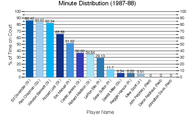 | Rex Chapman | 32 | 1108 | 231 | 461 | 50.11 | 66 | 159 | 41.51 | 81 | 102 | 79.41 | 93 | 117 | 53 | 16 | 61 | 85 | 609 | 19.03 |