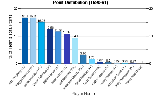 | John Pelphrey | 28 | 890 | 131 | 303 | 43.23 | 62 | 164 | 37.8 | 80 | 102 | 78.43 | 145 | 86 | 43 | 9 | 89 | 80 | 404 | 14.43 |