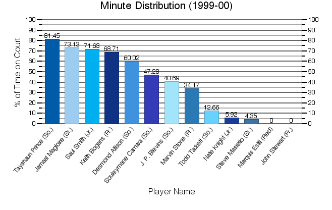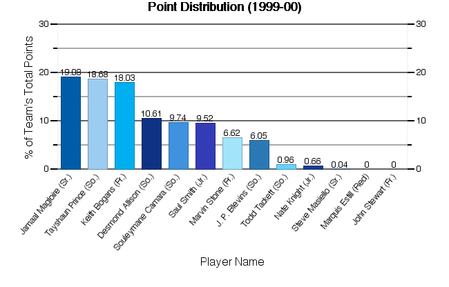 | Keith Bogans | 33 | 917 | 138 | 339 | 40.71 | 48 | 164 | 29.27 | 87 | 135 | 64.44 | 77 | 42 | 119 | 57 | 47 | 1 | 57 | 80 | 411 | 12.45 |