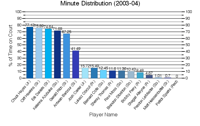 | Chuck Hayes | 32 | 991 | 131 | 246 | 53.25 | 3 | 12 | 25 | 77 | 113 | 68.14 | 171 | 89 | 260 | 97 | 41 | 45 | 82 | 65 | 342 | 10.69 |