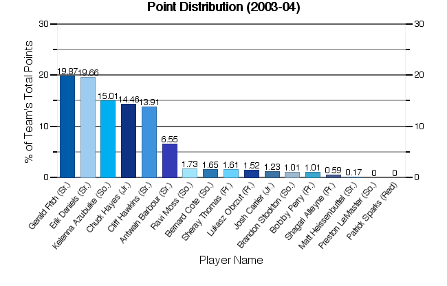 | Player | Games Played | Min | FG | FGA | % | 3Pt FG | 3Pt FGA | % | FT | FTA | % | Def | Off | Total Rebs | Asst. | St. | BS | F | TO | Total Pts | PPG |