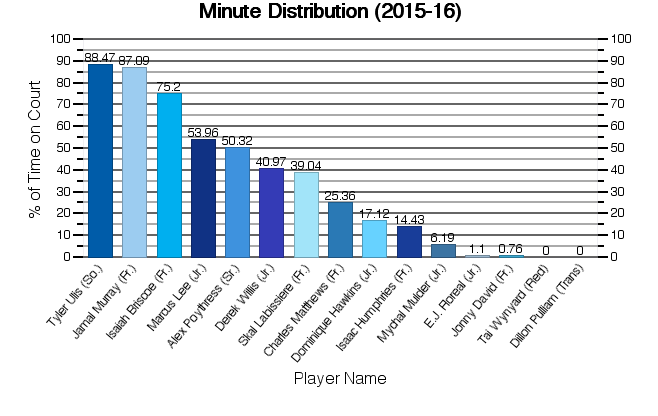 | Tyler Ulis | 35 | 1287 | 192 | 442 | 43.44 | 55 | 160 | 34.38 | 167 | 195 | 85.64 | 85 | 20 | 105 | 246 | 51 | 4 | 64 | 69 | 606 | 17.31 |