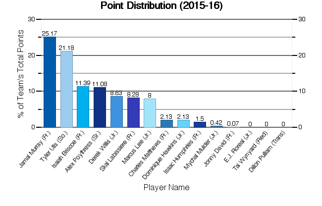 | Alex Poythress | 31 | 732 | 119 | 198 | 60.1 | 7 | 23 | 30.43 | 72 | 102 | 70.59 | 132 | 55 | 187 | 10 | 19 | 21 | 112 | 37 | 317 | 10.23 |
