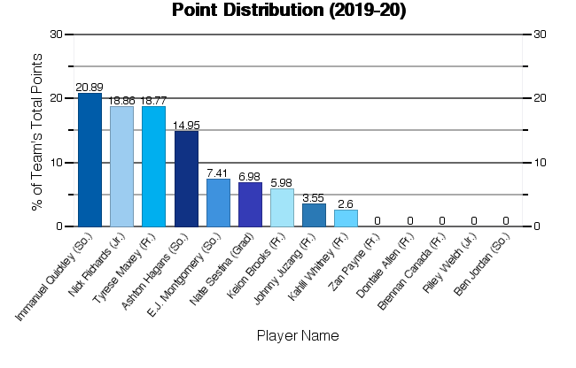 | Keion Brooks | 31 | 469 | 58 | 123 | 47.15 | 5 | 19 | 26.32 | 17 | 27 | 62.96 | 68 | 31 | 99 | 6 | 11 | 13 | 46 | 25 | 138 | 4.45 |