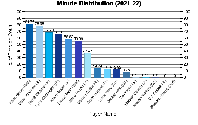 | Davion Mintz | 31 | 768 | 86 | 225 | 38.22 | 44 | 128 | 34.38 | 47 | 67 | 70.15 | 46 | 21 | 67 | 55 | 19 | 4 | 52 | 31 | 263 | 8.48 |