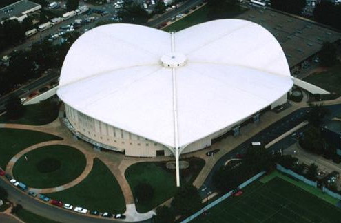 Perhaps due to the dawn of the space age, in the 1950's and on through the 60's and later, gymnasiums became more and more daring architecturally.