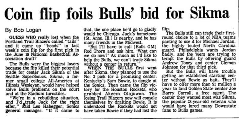 Even the Bulls did not know what they had and were considering trading the pick for a center such as Jack Sikma or Tree Rollins.