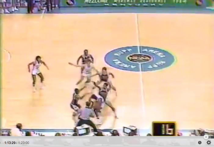 Capture 00 - Dicky Beal (in white) receives ball inbounds directly underneath the Illinois backboard - Time = 22 seconds