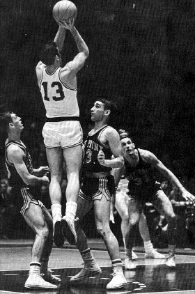 Speaking of Bob Knight, if you hadn't already guessed, he too also faced Kentucky as a player while he attended Ohio State. Those two games were both in the NCAA Regionals (and both won by OSU) and involved some powerhouse Ohio State teams, featuring All-Americans such as Jerry Lucas and John Havlicek. Knight was a role player, but he did see regular action for the Buckeyes. He was coached by Fred Taylor who (like Knight and Krzyzewski after him) won a national title. Incidentally, Taylor was coached at Ohio State by William Dye who in turn was coached by notable Buckeye coach Harold Olsen. Olsen in turn was coached by the legendary Walter "Doc" Meanwell of Wisconsin in the early part of the century. (It is noteworthy that when Rupp coached high school basketball in the northern Illinois city of Freeport in the 1920's, he used to travel to Madison Wisconsin to watch the Badgers play under Meanwell, and Rupp claims he learned much from the experiences.) This string of coaches illustrates just a part of what is an amazing coaching tree which involves some of the greatest coaches in NCAA basketball history.