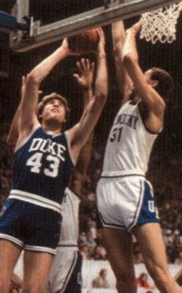 But as with the earlier contest, Duke ran out to a big lead. And just as with the earlier contest, Kentucky made their comeback. With Bowie fouled out, it was UK junior Fred Cowan who took over the scoring duties as he contributed Kentucky's final 15 points of the game. Cowan scored a field goal with 37 seconds left to tie the score at 54-54. Duke's Gene Banks hit one of two free throws in what would prove to be the final margin. But this was not before Kentucky had one last attempt to win the game. After a time-out with nine seconds left, Kentucky senior Kyle Macy, with Duke's Vince Taylor guarding closely, saw no other option and forced an 18-foot shot which missed. That was the ballgame. The hometown fans screamed for a foul but no call was made. Said Taylor, "I put my hands straight up and there definitely was contact. . . People will say I fouled him and I didn't think I did. He fell into me after the shot, and the defensive man has to have some advantages."