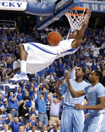 The only thing that slowed down Wall was early in the second half he was forced to leave the game with cramps and didn't return for 20 minutes as doctors struggled to find a vein for a needle. With Wall out of action, the Tar Heels crept back into the game and nearly stole it, getting within three points late in the game, before Wall's fellow freshman guard Eric Bledsoe hit some key free throws down the stretch and Wall capped the victory with a pair of free throws with under 5 seconds remaining to give the Wildcats an insurmountable 68-63 lead. Junior Patrick Patterson led the Wildcats with 19 points and 7 rebounds.